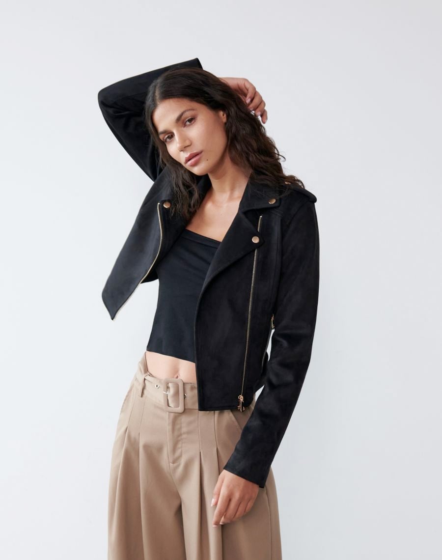 Faux suede biker jacket